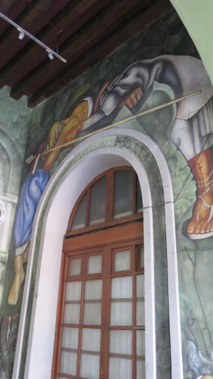 Die imposanten Malereien über die Geschichte Mexicos in den Torbögen...