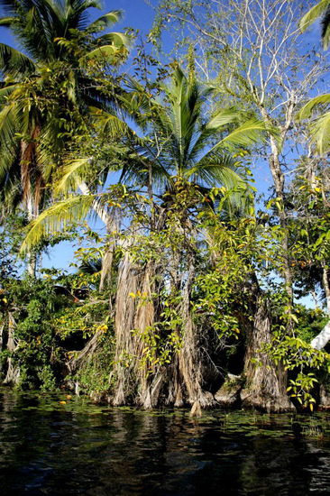 Wir besuchen drei Cenoten, welche die Lagune mit Süsswasser versorgen... - hier die schwarze Cenote....