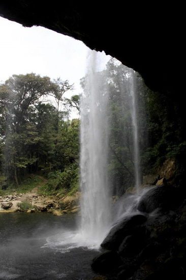 Was diesen Wasserfall speziell macht, ist der Umstand, dass man über einen Weg hinter das Wasser gehen kann...