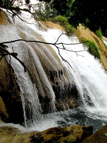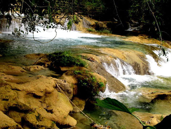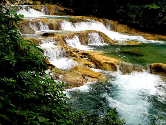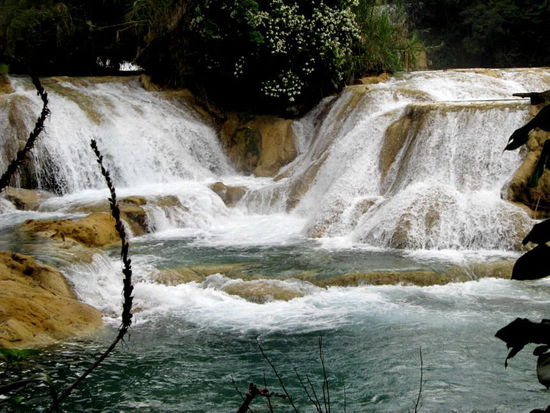 Türkisfarbene Wasserbecken und gewaltige weisse Wassermassen, welche hinunter donnern... - alles umgeben von einem grünen Urwald...