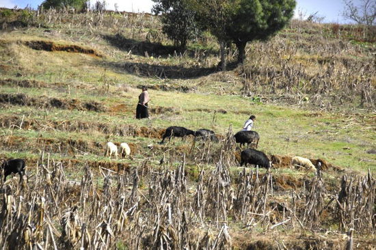 Kleine landwirtschaftliche Parzellen, verbunden mit viel Handarbeit...; die Leute leben vor allem vom Gemüseanbau...