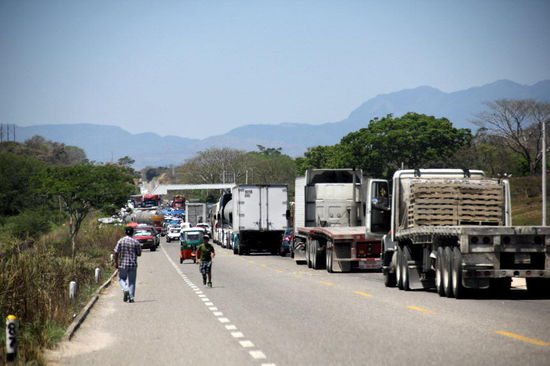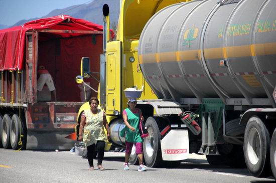 Taxis schwirren umher...; und wir haben immer noch nicht begriffen, worum es geht...! Langsam fahren wir vor, benützen jede Gelegenheit, um anhalten oder wenden zu können...; den Rest bis zur Spitze des Staus gehen wir zu Fuss...; LKW-Fahrer klären uns auf - es ist eine Strassenblockade der streikenden Lehrer...!