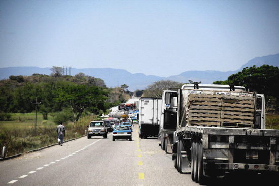 Und plötzlich geht nichts mehr...; eine lange Lastwagenkolonne steht im Stau...! Was ist los hier?