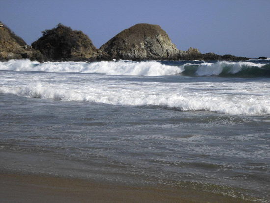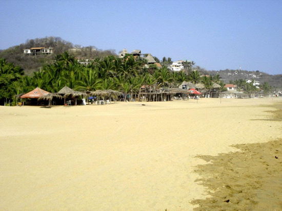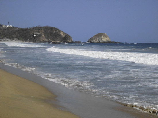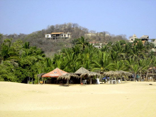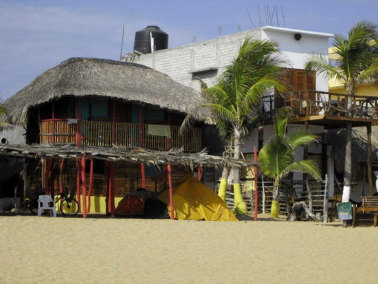 Doch eigentlich sind wir am Strand von Zipolite gelandet, ca. 4 km westlich von Puerto Angel! Bei einem Hotel haben wir einen sehr schön gelegenen