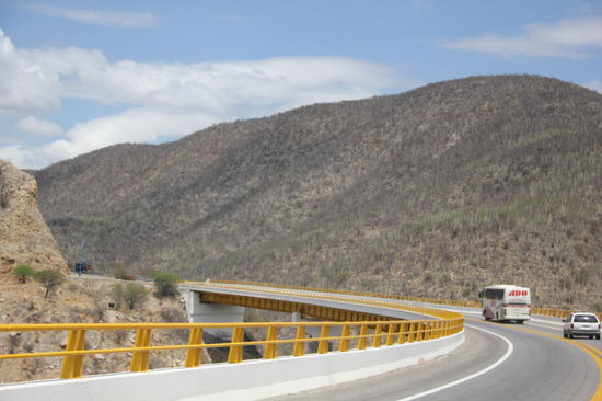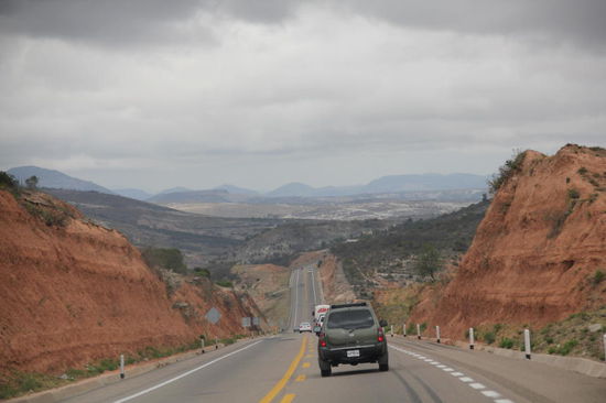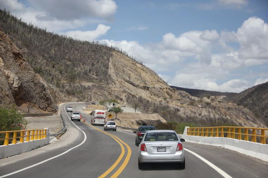 Im Süden gibt es eine einzige Bergkette - die Sierra Madre del Sur. Diese Höhen und Täler gilt es zu überwinden. Die ganze Strecke misst über 500 km, und na ja, Leomobil ist kein Rennauto...! Die Autobahn ist aber in sehr gutem Zustand, was die Fahrt über diese breite Bergkette wesentlich erleichtert!