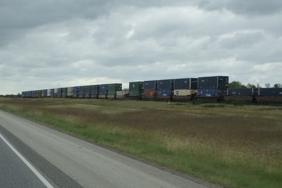 Die Autobahn Richtung Torréon führt über Saltillo. Auch diese Strecke kennen wir bereits von der Hinfahrt. unterwegs begegnen wir einige Male diesen endlos langen Güterzügen...