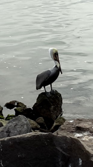 Flugkünsten der Pelikane - wie sie über dem Hafenbecken kreisen und hinab stechen ins Wasser, um eine Fischmahlzeit zu erhalten...