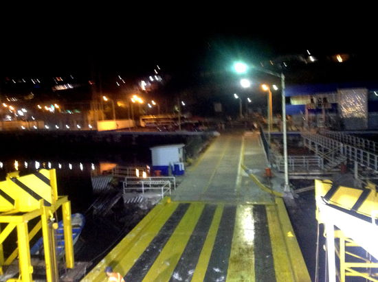 Schon bald läuft die Fähre ein...! Zu unserem Erstaunen gibt es hier recht intensive Personen- und Fahrzeugkontrollen.