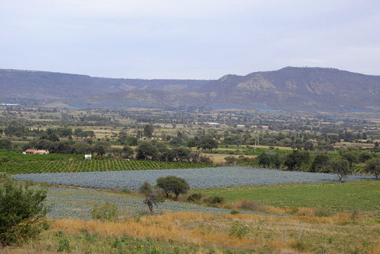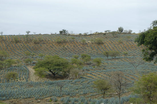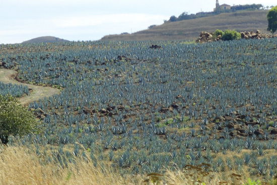 Die grossen, weiten Felder mit den blauen Agaven kündigen die Umgebung der Stadt Tequila an. Der Name der Stadt ist auch gleichzeitig der Name des weltweit bekannten Schnapses "Tequila". Es ist eine Unterart des Mezcal, welcher in Mexico destilliert wird. Der "Tequila" selber darf nur aus dem Herz der blauen Agave gebrannt werden.
