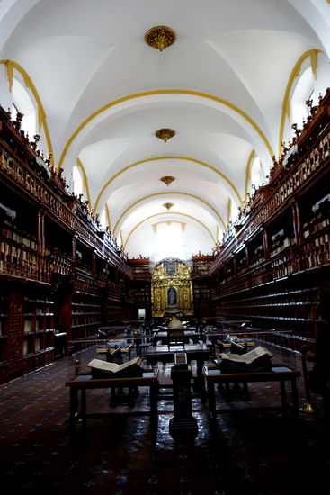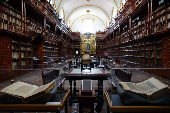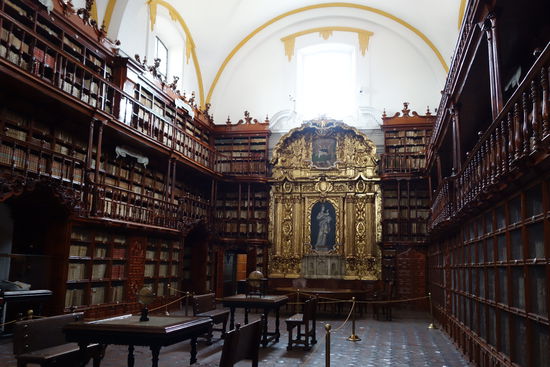 Und nur einige Schritte weiter - im gleichen Gebäude befindet sich die Biblioteca Palafoxana. Sie wurde durch den Bischof Palafox 1646 gegründet und gilt als grösste Bibliothek Amerikas. Sie beherbergt ca. 45'000 Bücher, u.a. die sogenannte Nürnberger Chronik von 1493 mit mehr als 2000 Holzschnitten.