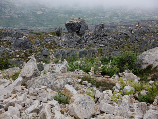 Steine, Steine, früher vermutlich nur im Winter passierbar...; wir haben nur Bilder mit Schnee gesehen, wie die Männer im "Goldrush" zum Whitepass hochgestiegen sind...