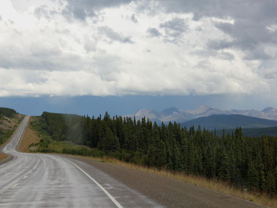 Die 430 km von Whitehorse nach Watson Lake fahren wir problemlos...; vor Rancheria ist die Baustelle noch immer...; eine Schweizer Familie aus St. Gallen musste hier vier Tage warten, weil die Strasse bei einem heftigen Unwetter weggerissen wurde...