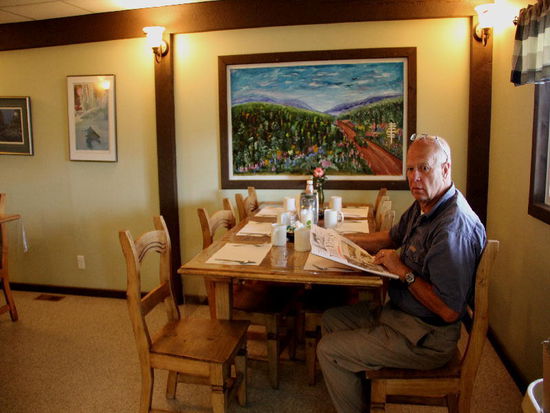 Am andern Morgen gönnen wir uns ein reichhaltiges Frühstück...; auch Leomobil braucht flüssige Nahrung...