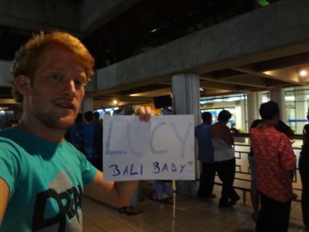 Dann kam die Verstärkung nach Bali. Natürlich wurde auch sie mit Empfangs-Schild abgeholt.