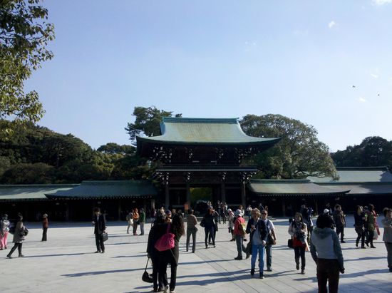 Am Nachmittag haben wir dann die Besichtigung des Meiji-Schreins nachgeholt. In einem wundervoll angelegten Innenstadtpark in Tokyo erstreckt sich das recht schlichte aber große Tempelgelände. Leider kein Vergleich zu Nikko.