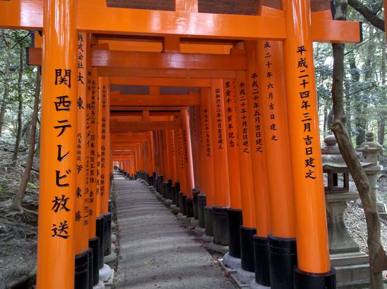 Wir kauften uns dann noch für 100 Yen eine Karte (Ohne die währen wir auch ziemlich verloren gewesen) von Kyoto und radelten Richtung "Fushimi Inari"-Schrein. Sehr schön anzusehen und kostet keinen Eintritt.