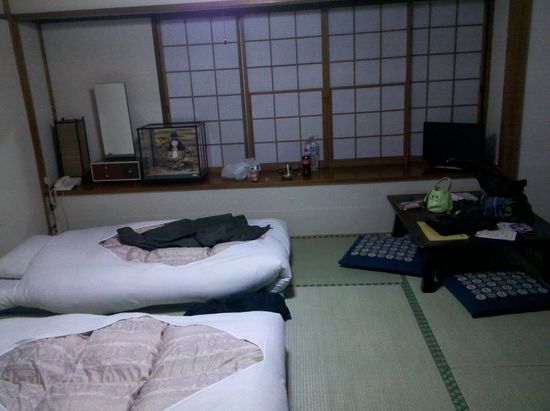 Bbeim "Fuji Hakone Guest House" angekommen erwartet uns Hakone mit Regen, aber eine junge Dame erklärt in sehr gutem Englisch das Haus und alles Notwendige zur Übernachtung. Im Gegensatz zu dem Hostel in Hiroshima haben wir hier noch weitere Matten damit wir weicher in den Schlaf schlummern.