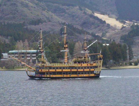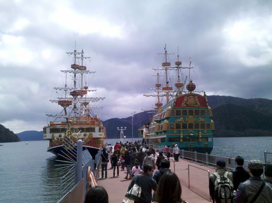 Diese Seilbahn bringt einen zum Lake Ashi. Und ab hier wird es kitschig: Mit einem Piratenschiff setzt man über auf die andere Seeseite.