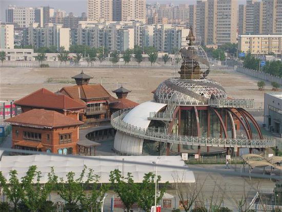 kann noch für RMB 60 besichtigt werden. Die Mercedes Benz Arena dient als Aussichtsplattform und beheimatet im Innern u.a. Kinos, Restaurants und eine Eislaufarena.