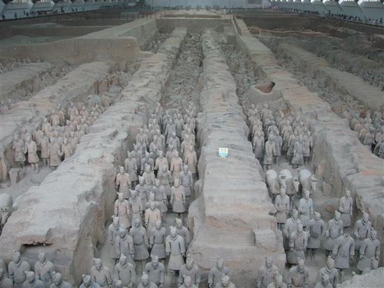 in der immer noch aktiv ausgegraben wird und in der hauptsächlich zerbrochenen Krieger zu sehen sind.