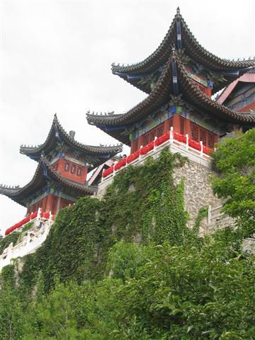 in der im 6. Jh. Sun Simiao, ein Heilkräuterkundiger Mönch, auch als König der Medizin bekannt, gelebt haben soll, der viele seiner Zeitgenossen geheilt hat und selbst 140 Jahre alt wurde. Weiter den Weg entlang, wir können schon die Tempel droben am Gipfel sehen,