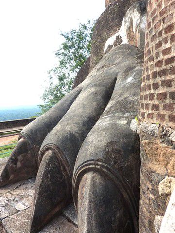 Mit 30 USD sind wir dabei und wir können durch die königlichen Lustgärten lustwandeln um dann den Löwenfelsen zu besteigen. Ein weiteres Unesco Weltkulturerbe und ein Höhepunkt unserer Reise, gibt es doch auf halber Höhe die berühmten Wolkenmädchen von Sigiriya zu bestaunen. Sie sind sagenumwoben und faszinierend. Der Felsen ist nur 200 m hoch, ob der der gnadenlosen Hitze haben wir uns für einen Aufstieg schon um 7:30 entschieden. Die aufdringlichen Guides lehnen wir ab, denn immerhin haben uns Edeltraud und Wolfgang jahrlang trainiert und bergerfahren geht es alleine aufwärts. Als wir die Wolkenmädchen erreichen, konnten wir sie geraume Zeit ganz für uns alleine betrachten und uns ihrem Zauber hingeben. Sie sind geheimnisvoll, ihre Bedeutung ist bis heute nicht geklärt. Auf dem Hochplateau ist eine zerfalllene Festung und ein herrlicher Ausblick in das überraschend gebirgige Umland bietet sich uns an. Beim Abstieg sind schon bedeutend mehr Menschen hier und es ist gut, dass wir bei angenehm kühlen Temperaturen den Aufstieg gemacht haben. Manche Reisende lassen sich beim Aufstieg von den Guides fast hochschieben. Ängstliche werden bei der Hand genommen.Wir hatten den Eindruck, dass besonders den Damen die Guides recht gerne hilfreich waren.