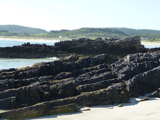 Aber nützte ja nix, es ging los Richtung Süden, durch das schöne Donegal, beim Fahren kam ich wieder aus dem Staunen nicht heraus, viele "Aaaahhs" und "Oooooohs" später erreichte ich Portnoo und machte eine Pause am Strand, auf der Picknickdecke, die Sonne knallte.