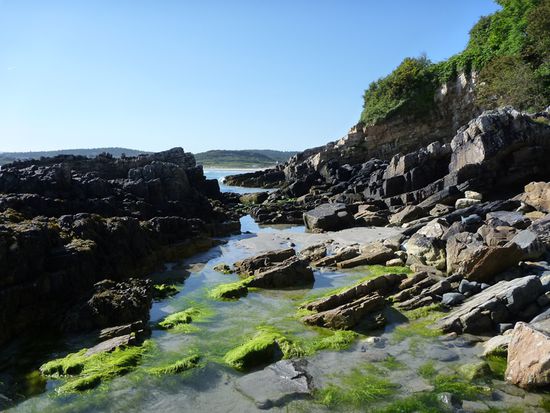 Passend zu meinem Fortkommen lichtete der sich aber mehr und mehr wie ein Theatervorhang und hing schließlich, als ich am Strand ankam, nur noch über dem Meer und gab den Blick frei auf meine Lieblingsklippe und meinen Lieblingsturm.