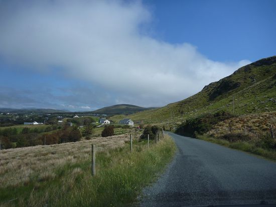 Einen leichten Sonnenbrand später (nee, so schlimm war es nicht) gab es dann einen weiteren Stopp im Dörfchen Ardara. Zum Shoppen und Geld holen. Aber der Automat gab nichts her. Zu Shoppen gab es immerhin Blasenpflaster und so eine Art Hütchen aus Schaumstoff für die Zehen (seltsam, ich hatte noch nie Blasen an den Zehen, aber diesmal hatte es gleich beide kleine Zehen erwischt).