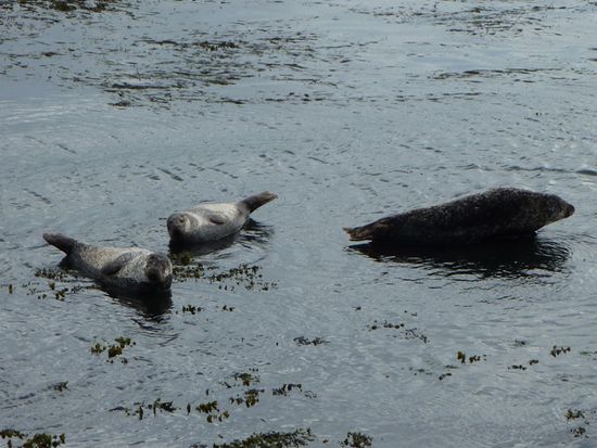 Diesmal waren nicht so viele Robben da, aber ich entdeckte drei ganz nah in der Nähe vom Hafen und filmte sie gleich mal. In dem Moment kam ein Einheimischer mit seinem Auto vorbei, hielt neben mir an und gratulierte mir lang und breit zur Wahl meines hervorragenden Fotomotivs. Da ich mit Ton filmte gab das einen super Effekt.
