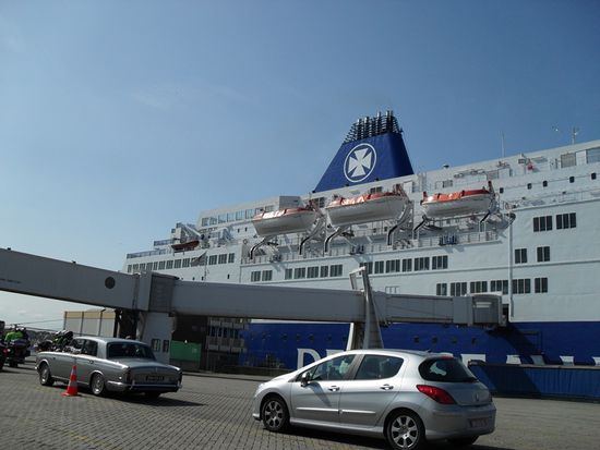 Für mich war das natürlich schön, denn so hatte ich wenigstens jemand, der mich aus meiner deprimierten Abschieds-Stimmung reißen konnte. Und an der Fähre nach Ijmuiden konnten wir uns gemeinsam über die undurchsichtige Fähren-Auffahrts-Reihenfolge-Taktik von DFDS und die anderen Autofahrer beömmeln.
