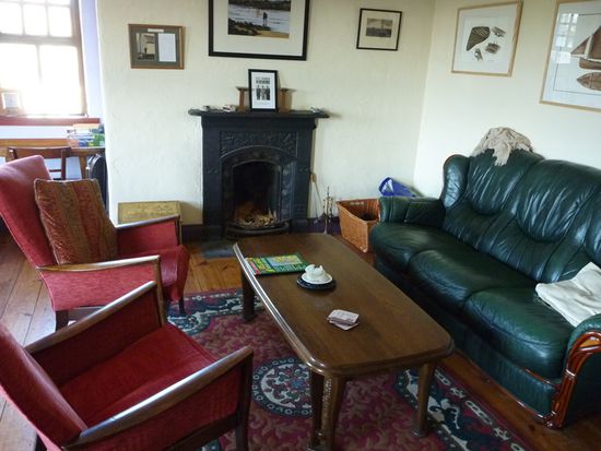 Es waren noch 1 Österreicher (der aus Zimmer 9), 2 Australierinnen und 1 Biker aus Canada im Hostel. Der Kanadier konnte den Kamin anheizen und da saßen wir dann gemütlich rum und quatschten und tranken Bier. Da es nicht genug Biergläser gab, mussten einige ihr Guinness aus großen Rotweingläsern trinken, machte aber nix.