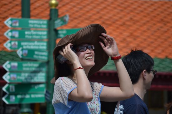 Durch unseren verspäteten Start landen wir erst 10Uhr Ortszeit in Bangkok und nach erstem Feilschen mit den Taxifahrern kommen wir gegen 12Uhr (7Uhr in DE) in unserem vorgebuchten Guest House (Lamphu House) im Backpackerviertel an. Am Nachmittag geht es durch mir bekannte Straßen in 5 Minuten rüber zur Khao San Road, der Partymeile im Viertel hier. Um ehrlich zu sein, haben wir danach erstmal eine Nacht gebraucht, um uns wieder an SO-Asien bzw. Bangkok zu gewöhnen. Wer schon mal da war, weiß, was ich meine: feuchtwarme Luft von 35 und mehr Grad, Verkäufer und Tuk Tuk Fahrer an jeder Ecke, die einen anquatschen, Müll und Dreck in vielen Ecken und darüber die wohlschmeckenden Garküchen und sonstigen mobilen Gefährte der Essen-Zubereiter dieser Stadt, dazu die teilweise sehr interessanten Backpacker aus der ganzen Welt, laute Straßen und stickige Luft...