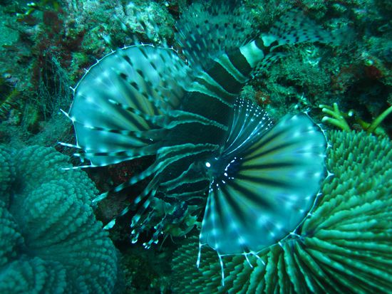 Muränen und mind. 7 Stachelrochen, super Sicht, wahnsinnig schöne, vielfarbige Korallen und Anemonen. (Nemo raus und schnell wieder rein, wieder raus wieder rein!) Der kleine Nemo kam heut garantiert zu spät zur Schule....