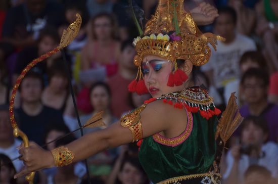 Dieses Spektakel findet auf einer ganz hohen Klippe, im Hintergrund der Sonnenuntergang, unter Beleuchtung einer Öllampe statt. Ca. 40 Sänger sitzen im Kreis und singen in einem hypnotischen Tempo "Kecak-Kecak, cak-cak-cak" dabei heben sie die Hände hoch und begleiten somit den ganzen Tanz. Die Mädchen sind wunderschön geschmückt und die Kostüme sind absolut beeindruckend!
