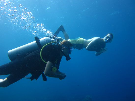 Schreiend vor Glück ist sie wieder aufgetaucht!! Keine Angst, keine Panik, nichts!!! Julia hat einfach nur genossen und möchte jetzt (nachdem se den Tauchlehrer kennengelernt hat und schaut ob er ihr passt ) vielleicht auf den Togians ihren Tauchschein machen.