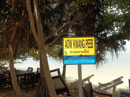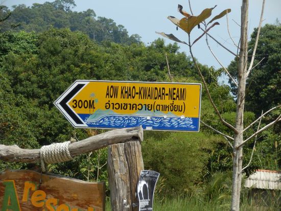 Wir haben nun schon fast alles gesehen und wollen uns gerade auf den Rückweg machen, als wir das Hinweisschild zum Aow Ko-Kyu sehen.