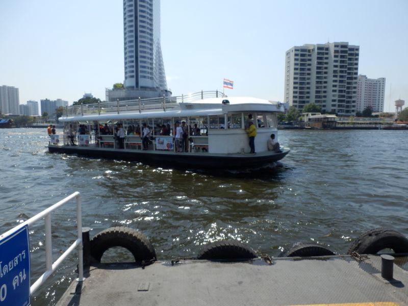 Am Si Phraya Pier fahren wir für 3,5 THB ( ca. 8 Cent ) p.P. auf die andere Seite vom Fluss.