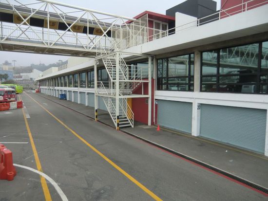 Genau gegenüber dem Fähranleger befindet sich die Rückseite der Boxengassen der Formal 1 Strecke.