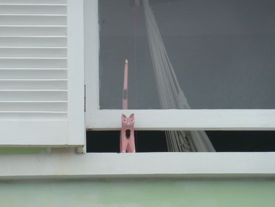 Auf dem Weg zum Hotel fallen uns originelle Fensterfeststeller auf!