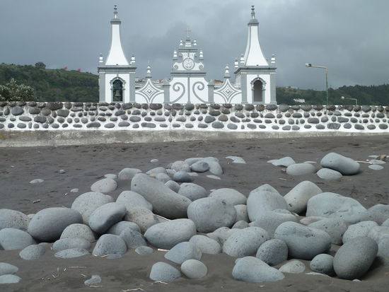 In Praia schauen wir uns den langen Lavastrand an mit riesigen rundgewaschenen grauen Wackermännern an. Auch die Kirche und ein Imperio liegen voll in der Sonne.
