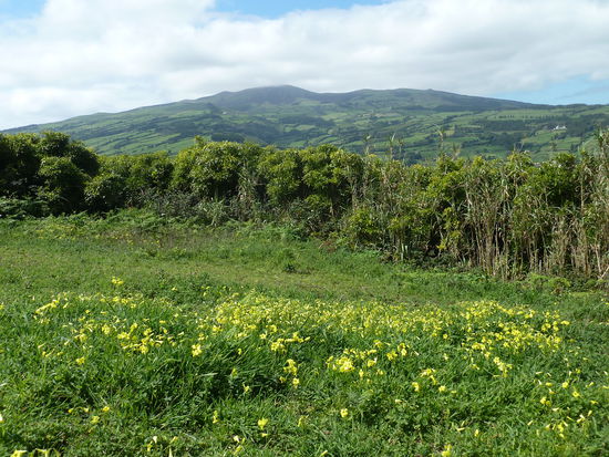 Nicht weit vom Botanischen Garten liegt der Miradouro des Monte Carneiro, vom dem wir einen nahezu 360°-Rundblick haben. Von dort sieht es inzwischen so aus, als ob in Kürze die Caldeira frei von Wolken sein könnte. Die Aussage des Reiseführers, dass man auf den Azoren keine Jahreszeiten kennt, sie aber täglich alle vier erlebt, kommt unseren bisherigen Beobachtungen sehr nahe.