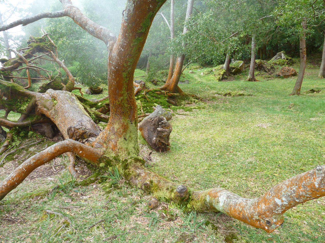 Vom Parkplatz läuft man durch einen vermoosten 'Märchen'wald zum Seeufer, wo es wieder kräftig dampft.