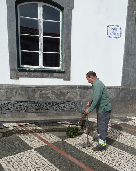 Überall sind die Plätze mit aufwändigen Plastermustern gestaltet. Dabei wird mit 'interessanten' Besen für die bei uns leider schon häufig vermißte Sauberkeit gesorgt.