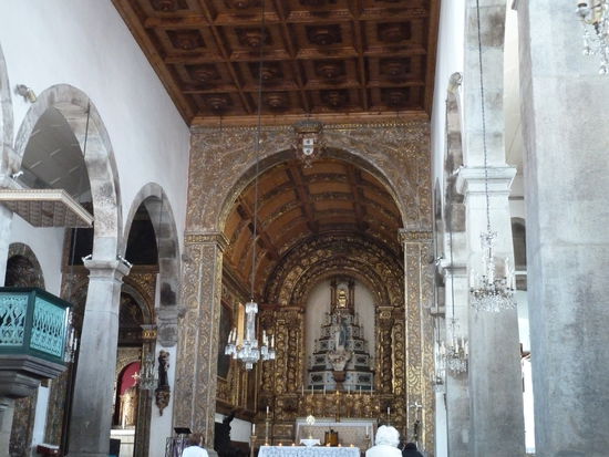 Auf dem Weg zurück in die Innenstadt passieren wir die Igreja Nossa Senhora da Conceiao - 1533 errichtet - mit einem Hochaltar aus vergoldeten Schnitzereien und hölzerner Kassettendecke.