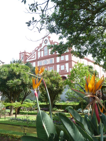 Vom Vorplatz des Museums blickt man in den prachtvoll angelegten Jardim Duque da Terceira - mit hohen Palmen und Kakteen bestückt.