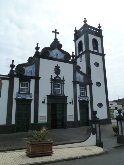 Eine steile Abfahrt führt uns nach San Antonio zu einer Kapelle mit herrlicher Aussicht auf die flachere Inselmitte - im Vordergrund blaue Blütenrispen, die wir bislang noch nicht gesehen haben, umschwärmt von zahlreichen Hummeln. Die Kirche des Ortes hat als Besonderheit auch blau-weiße Kacheln in der Fassade.