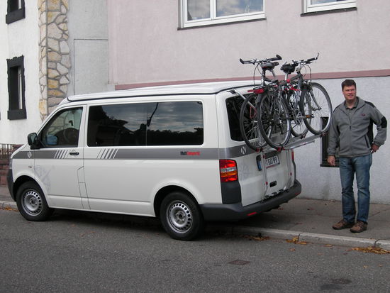 Mit dabei sind auch unsere Fahrräder, die am Heckträger befestigt werden.
