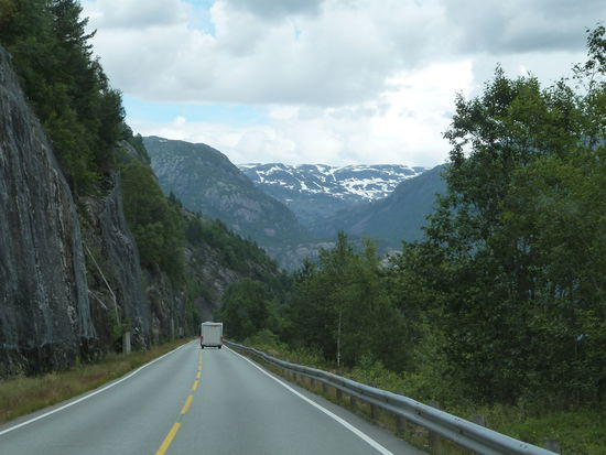 Wir fuhren tags darauf über Roldal nach Kinsarvik, vorbei an Fjorden, Bergen, Wasserfällen und durch ettliche Tunnels. Besonders die Wasserfälle Espelandsfoss, Latefoss, Vidfossen, Strandfossen und der Tjodnadalfossen haben uns sehr beeindruckt.