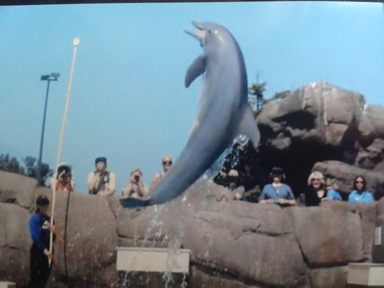Zuerst sah ich mir die Delfine an. Diese waren in einem Becken, das sehr niedrige Wände hat. So können die Besucher sie berühren und streicheln. Ihre Haut ist ganz glatt und fest. Ich durfte sie sogar auch füttern! Auf einmal hatte ich einen toten Fisch in der Hand